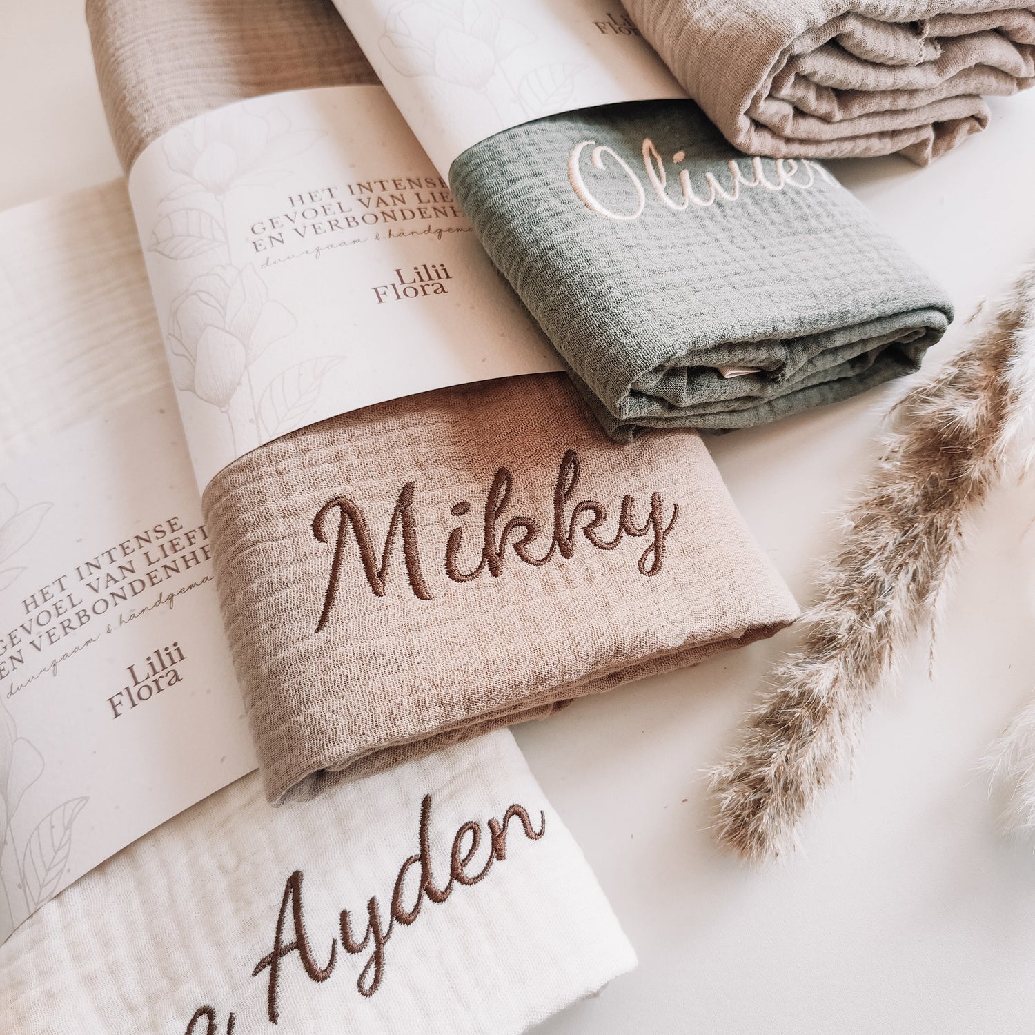 Bij Lilii Flora kun je de leukste items personaliseren met de naam van je kindje. De naam wordt geborduurd met luxe garen en je kan zelf het lettertype en de kleur kiezen. Ga jij voor het gepersonaliseerde geboortepakje, mutsje, badcape, badjas, knuffeldoekje of een van de andere musthaves voor jouw kleintje?