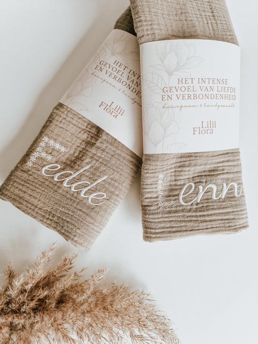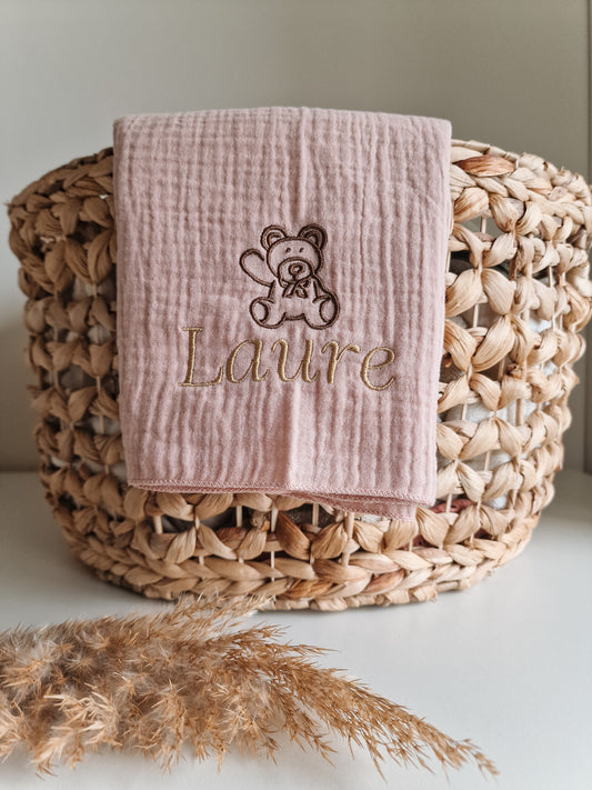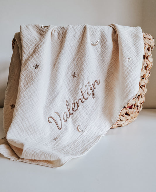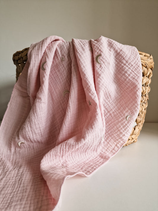 Hydrofiele doek met naam | Moon and Stars | Pink