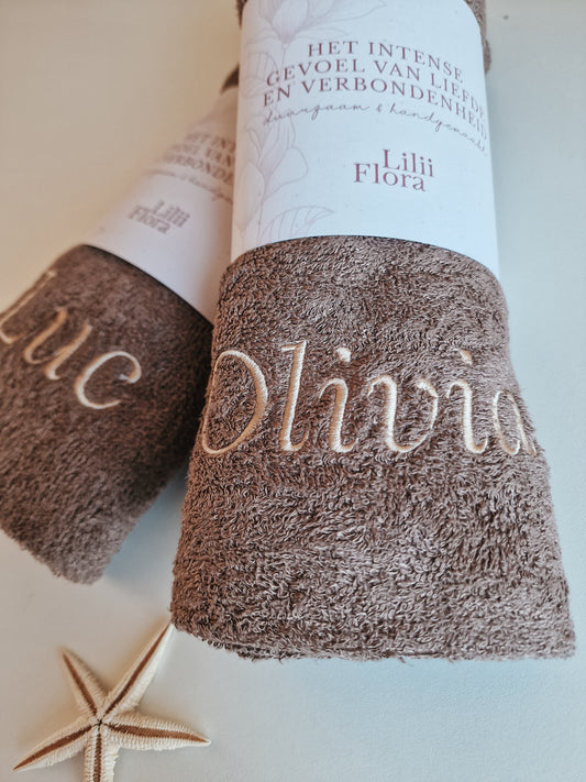 AanbiedingHanddoek luxe bamboe met naam | Earth brown