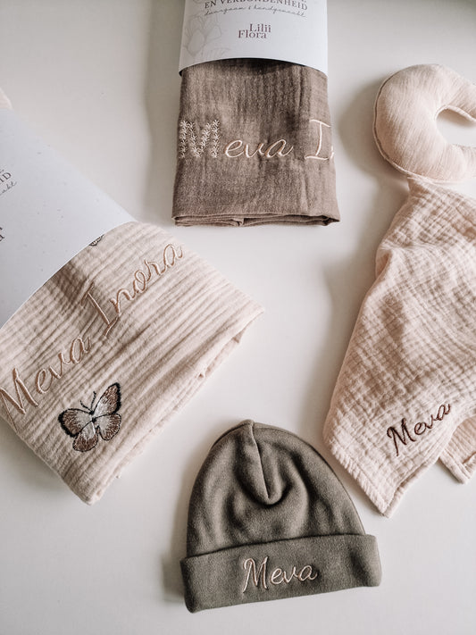 Babymuts met naam | Biologisch & Gebreid | Creme