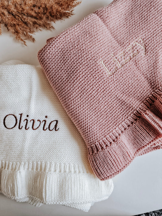 Ruffle Blanket | Knitted organic | Old pink