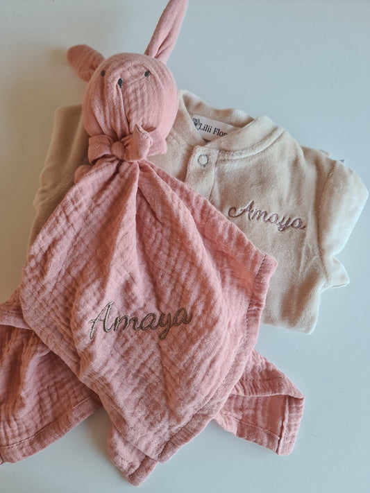 Knuffeldoekje konijn met naam | Hydrofiel | Pink
