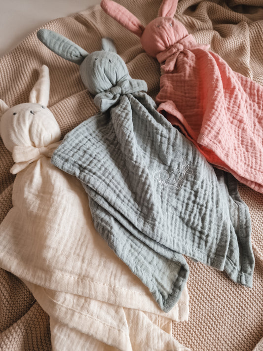 Knuffeldoekje konijn met naam | Hydrofiel| Ecru