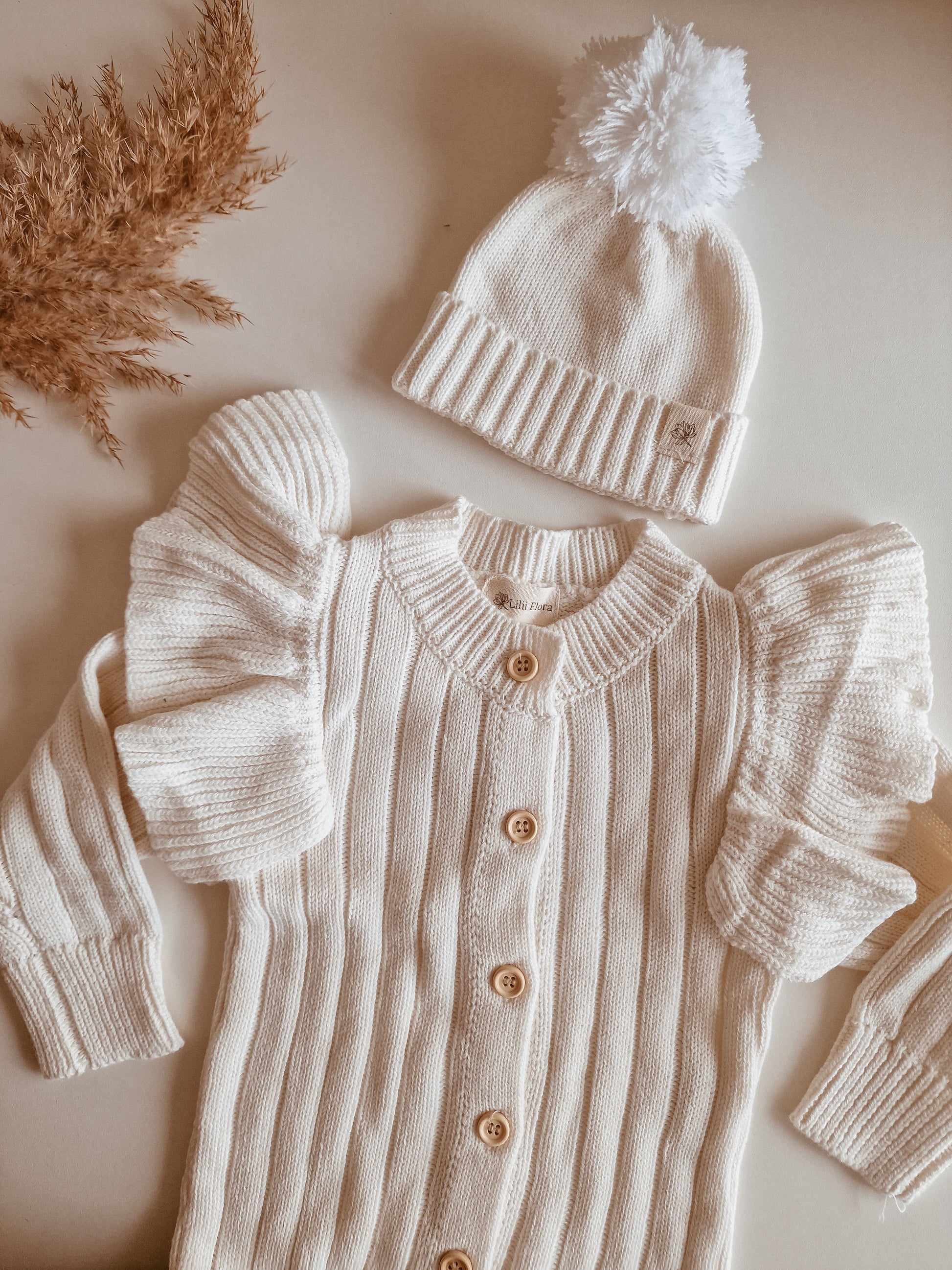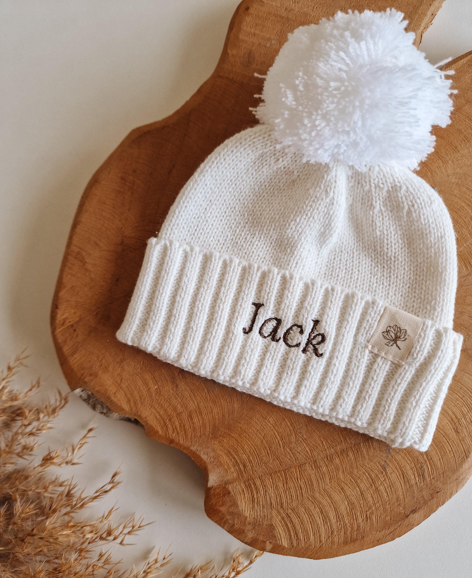 Babymuts met naam | Biologisch & Gebreid | Creme