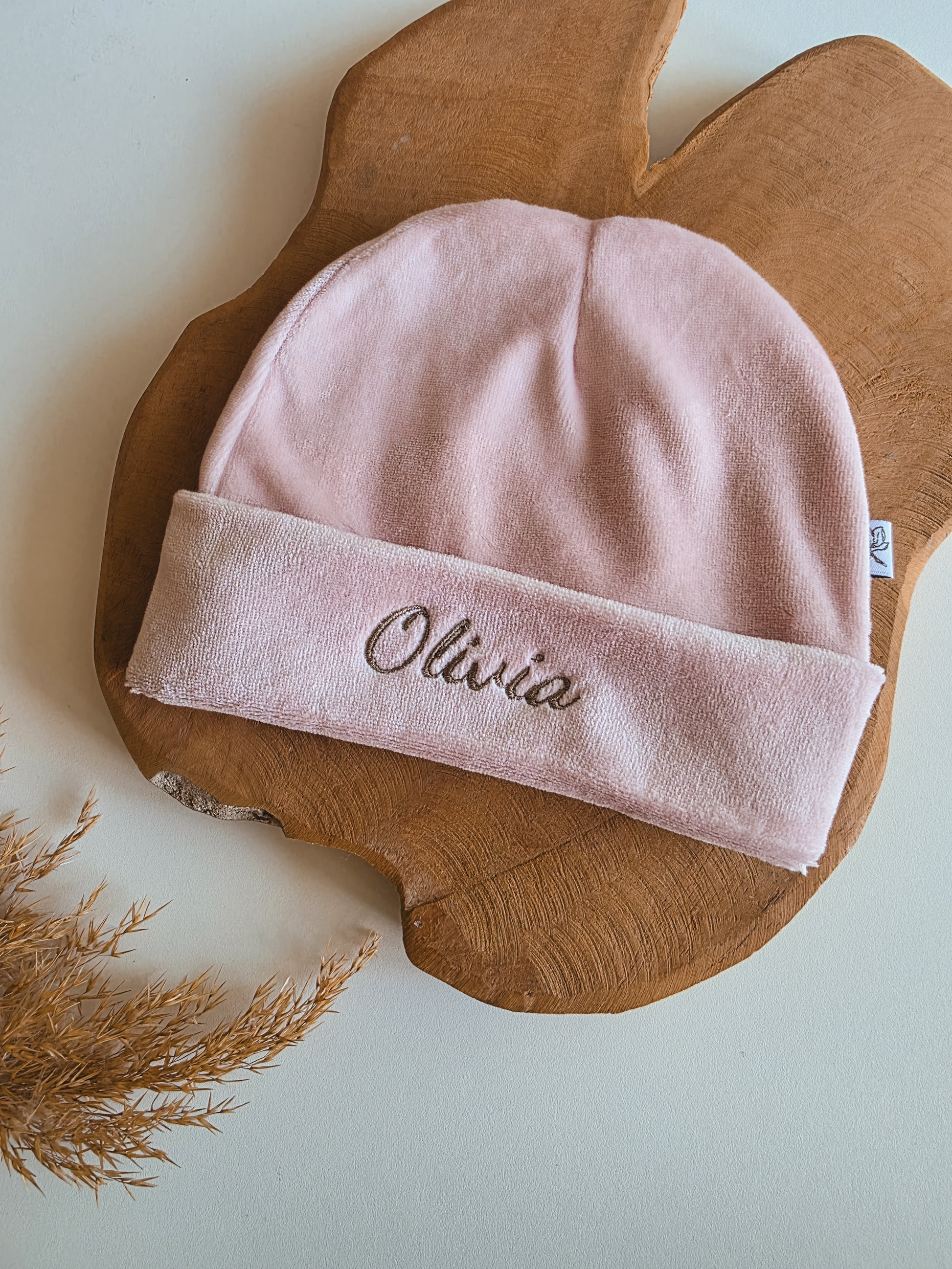 Maak een set samen met het heerlijke boxpakje met naam in dezelfde stof als dit babymutsje. Het bijpassende boxpakje kun je personaliseren met de naam van je kindje!