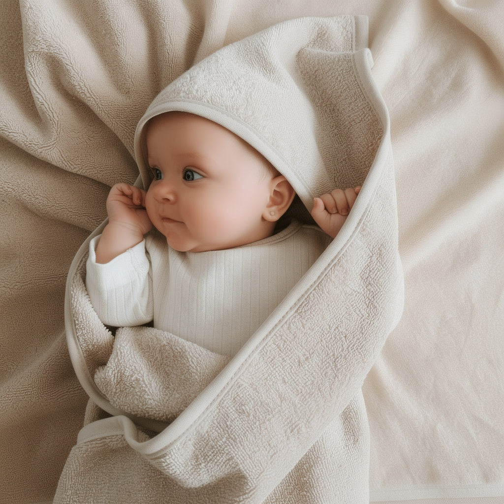 Een baby badcape in de kleur beige met naam is een perfecte toevoeging aan de babyuitzet. Deze zachte, comfortabele en gepersonaliseerde badcape biedt niet alleen warmte en comfort voor je kleintje na het baden, maar voegt ook een persoonlijk tintje toe aan de dagelijkse verzorgingsroutine.