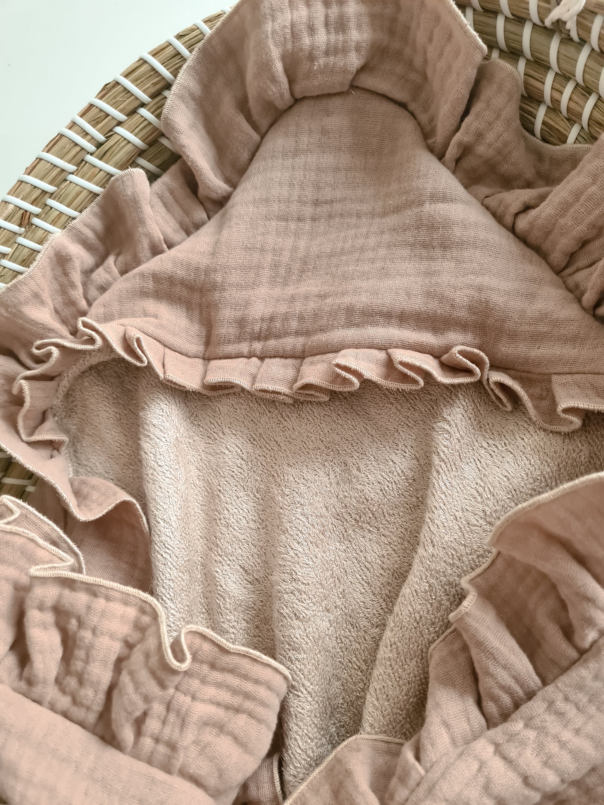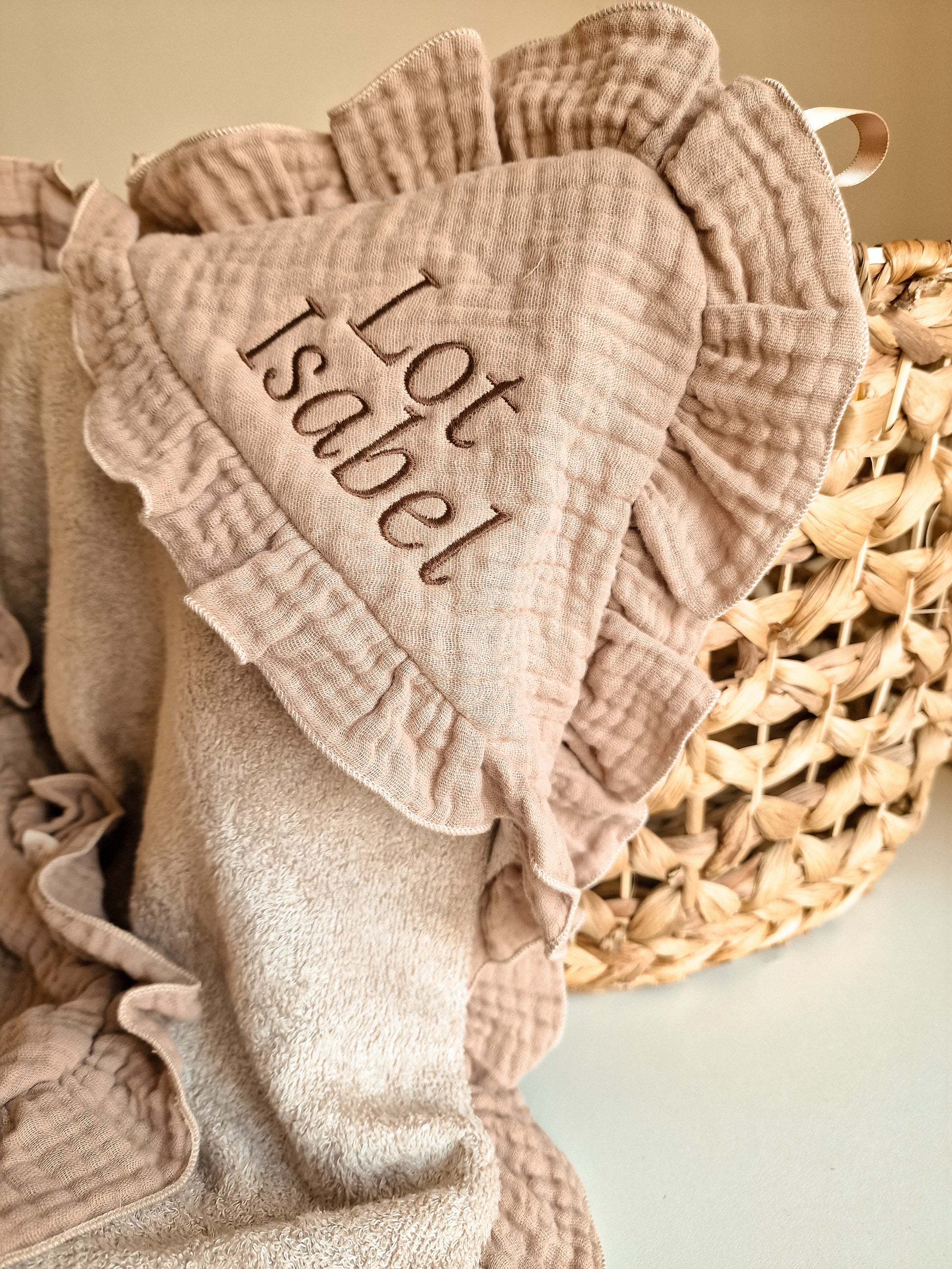Bij Lilii Flora streven we naar de hoogste standaard in babyaccessoires. Onze badcape baby omslagdoek met ruffle in de kleur Sandy Beach biedt je baby niet alleen comfort, maar ook een stijlvolle uitstraling na elk badmoment.