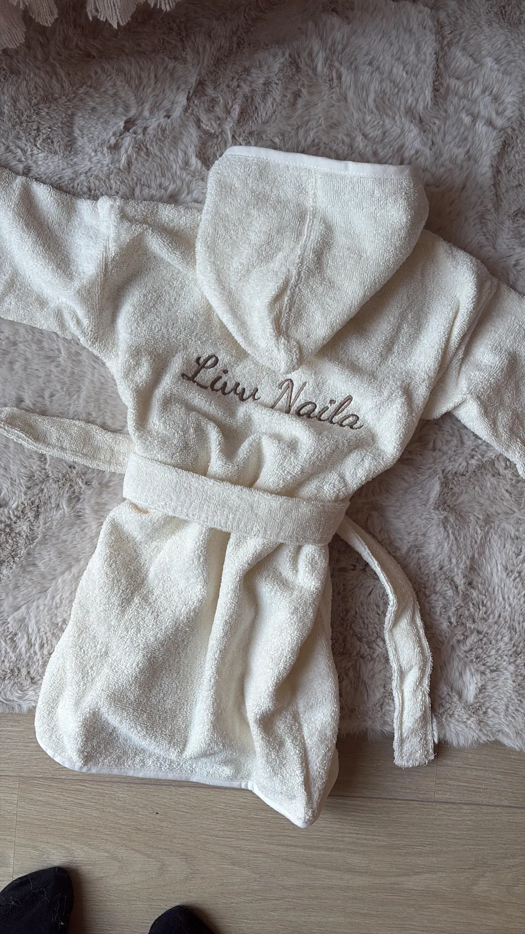Tags: badjas met naam, gepersonaliseerde badjas kind, kinderbadjas, badjas ecru, Lilii Flora, kinderaccessoires, gepersonaliseerde kinderkleding, cadeau voor kinderen, zachte badjas kind.