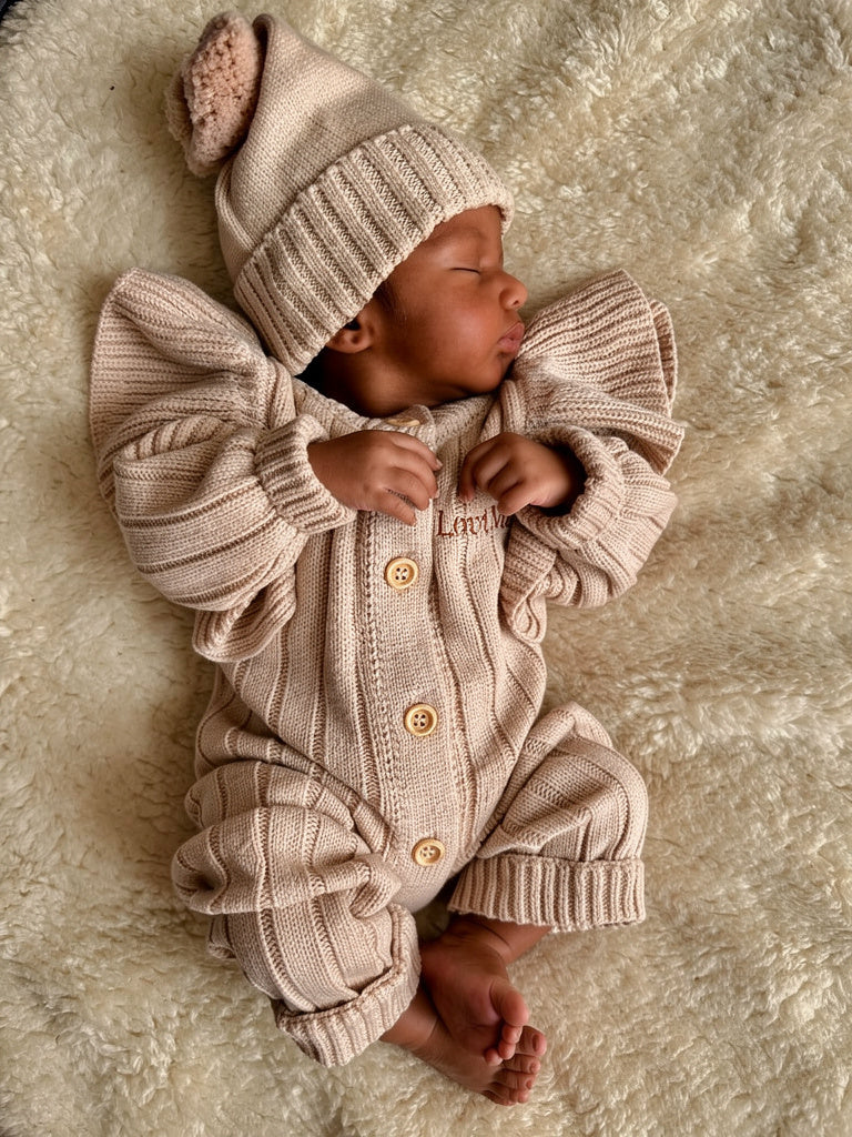 Dit heerlijke zachte pakje gaat je kindje heerlijk warm houden. Het boxpakje heeft een natuurlijke beige kleur en voelt zacht aan. Het leukste van dit boxpakje is dat je er een echt geboortepakje van kan maken omdat je deze kan personaliseren met de naam van je kindje.