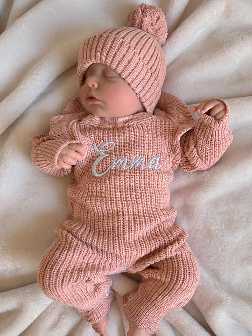 Maak het extra speciaal door de naam van je kleintje te laten borduren—een moment om voor altijd vast te leggen. Combineer het met onze bijpassende muts met pompom, ook personaliseerbaar met naam, voor een compleet en liefs setje.