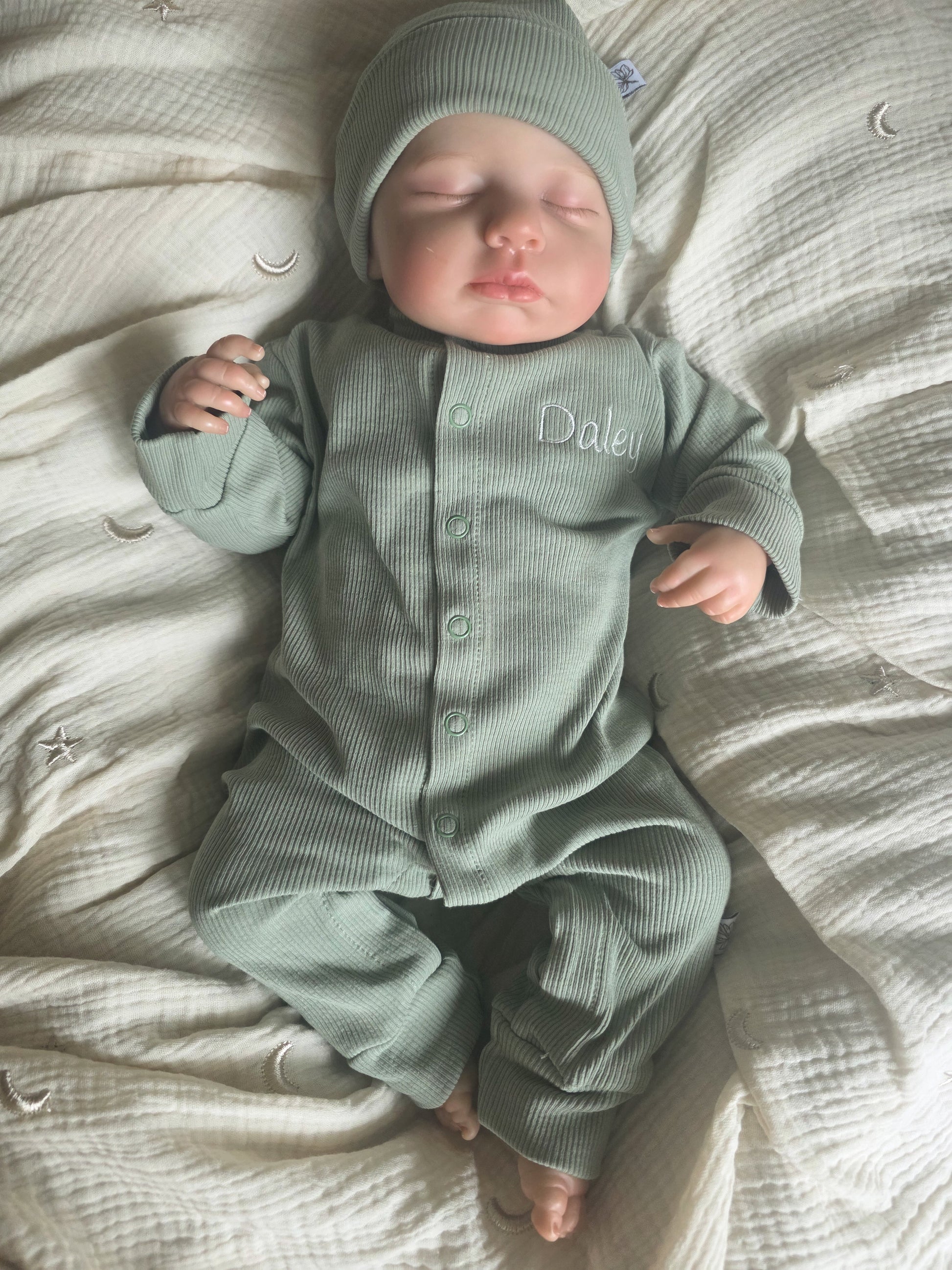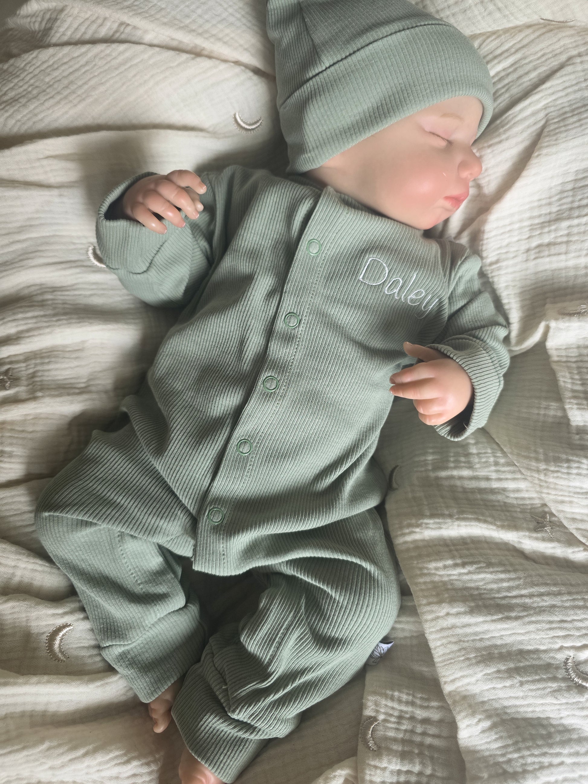 Dit heerlijke zachte pakje gaat je kindje heerlijk warm houden. Het boxpakje heeft een natuurlijke sage groene kleur en voelt zacht aan. Het leukste van dit boxpakje is dat je er een echt geboortepakje van kan maken omdat je deze kan personaliseren met de naam van je kindje.