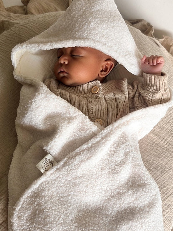 - Teddy stof: de zachte buitenkant zorgt voor een licht en comfortabel gevoel, ideaal voor de gevoelige babyhuid.