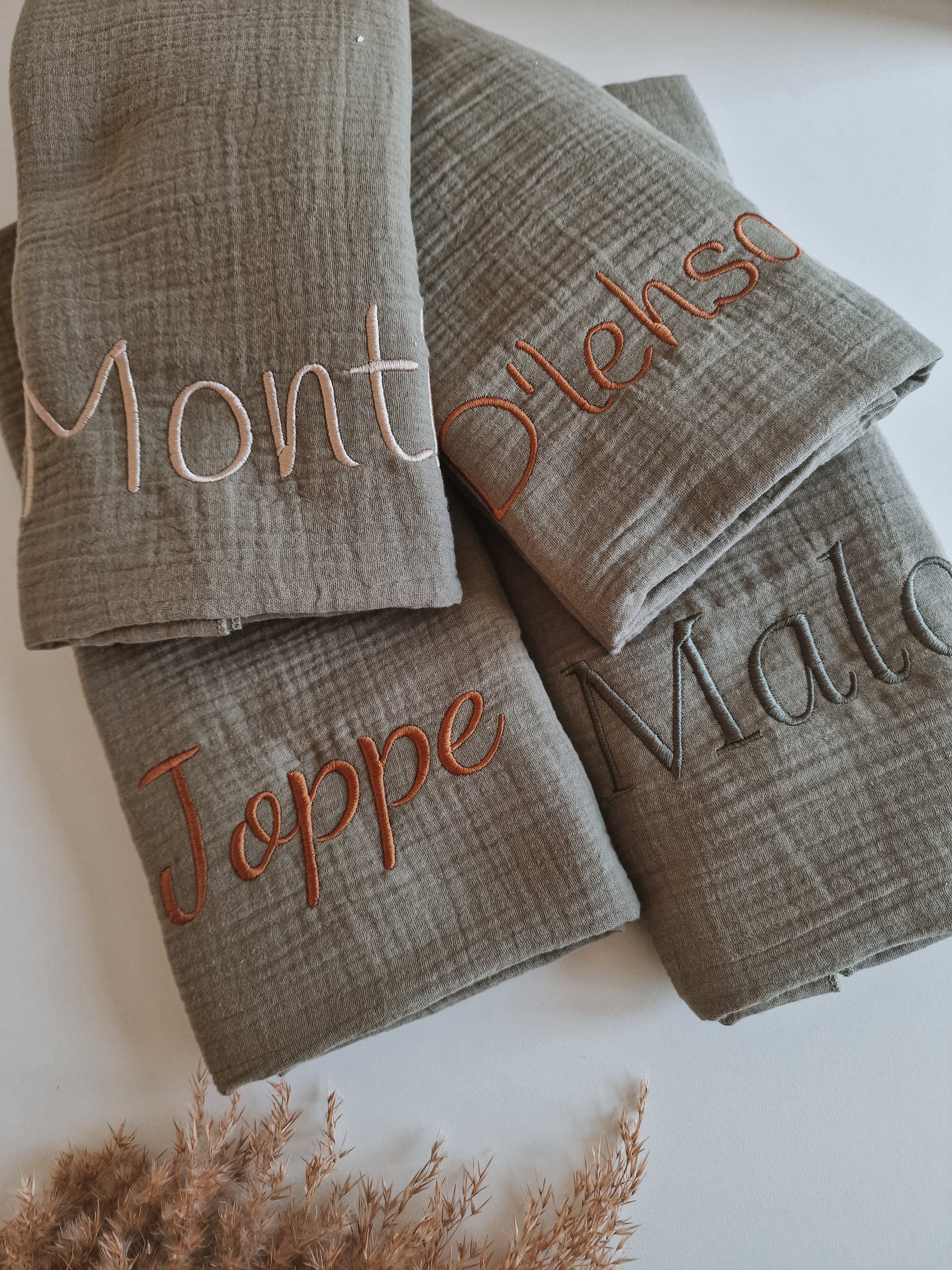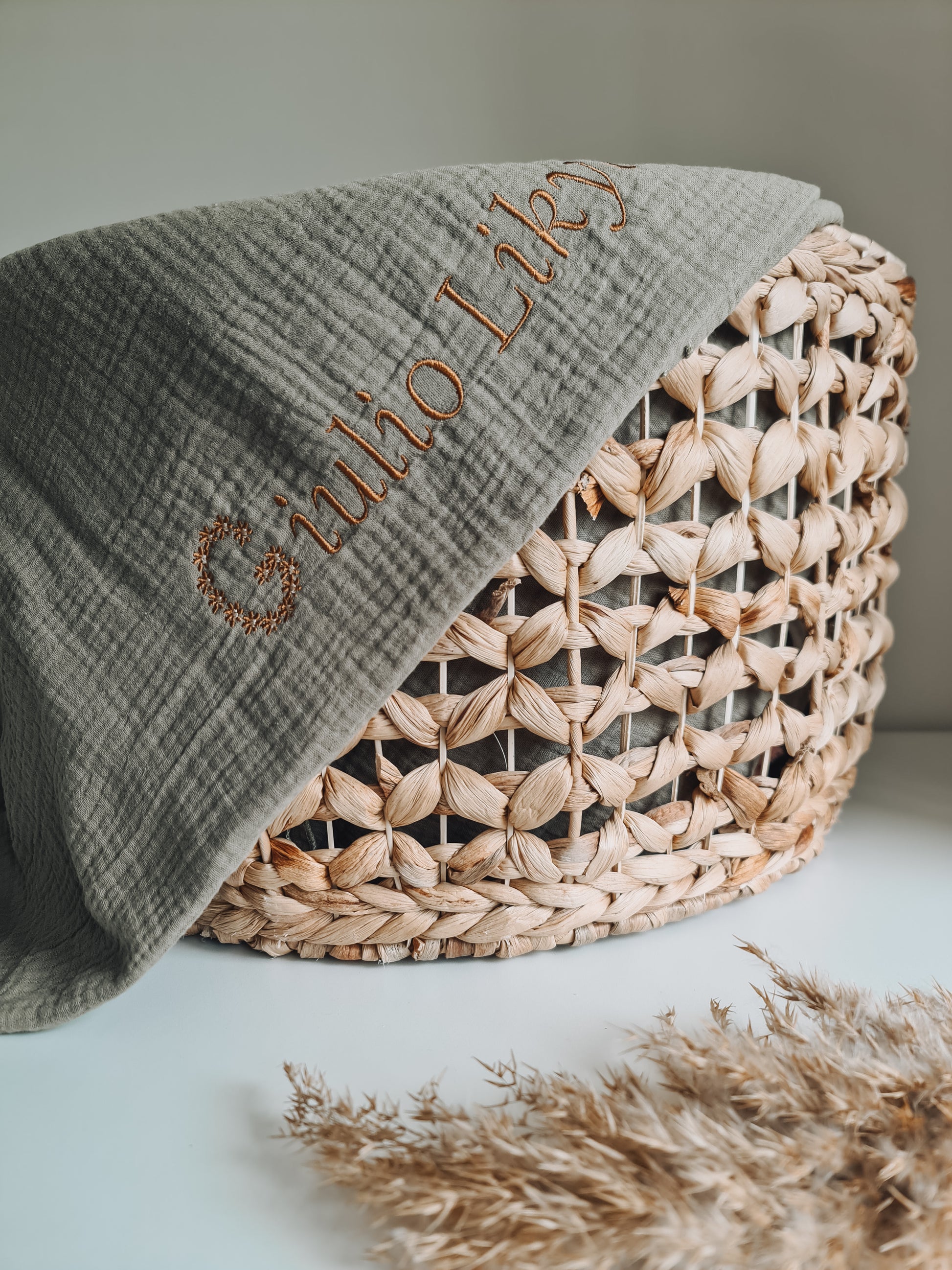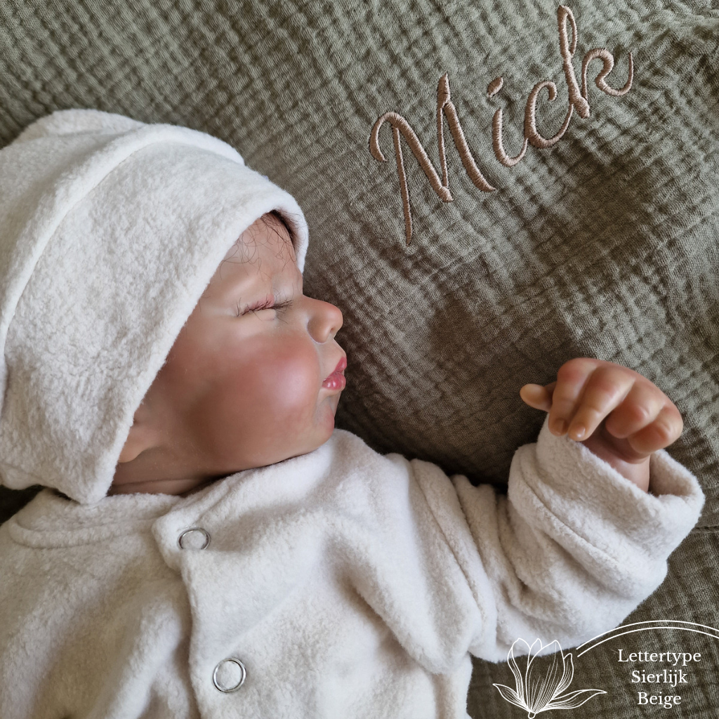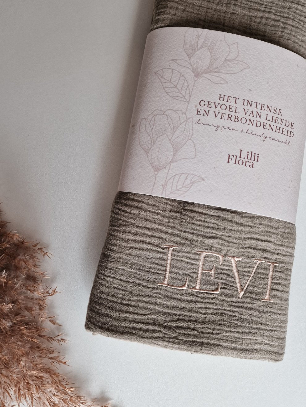 Door het ideale formaat van deze hydrofiele doek met naam is deze perfect te gebruiken als inbakerdoek. De stof is dun en luchtdoorlatend en mega zacht. Je kan je kindje gemakkelijk inbakeren zodat je een geborgen plekje kan bieden. Je kindje zal rustig kunnen slapen in deze inbakerdoek.